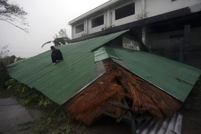 6. Even in anticipation of the hurricane, thousands of people fled their homes, closed schools, banned navigation, people stocked up with food and medicines. Even in anticipation of the hurricane, thousands of people fled their homes, closed schools, banned navigation, people stocked up with food and medicines. In the photo: roof of the house, torn Typhoon Megi, hanging from a tree. In the photo: roof of the house, torn Typhoon Megi, hanging from a tree.